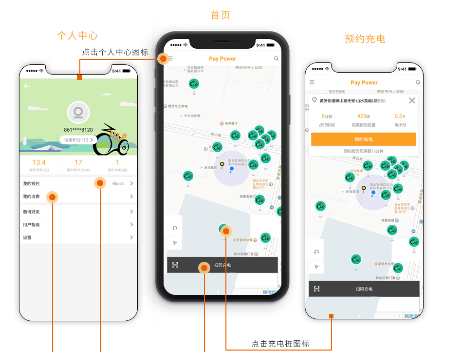 共享充電樁APP隨時隨地充電,在線支付,充電花費(fèi)一目了然,方便快捷。
